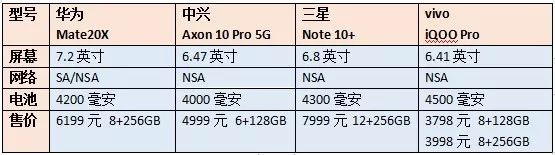 同时,这些5G手机都具有快充功能,这点越来越受用户的重视,能快速让手机“回血”。iQOO Pro采用44W快充、华为Mate 20X 5G手机采用40W快充,三星Note 10+标配25W快充,中兴Axon 10 Pro暂时没有披露这方面具体信息。