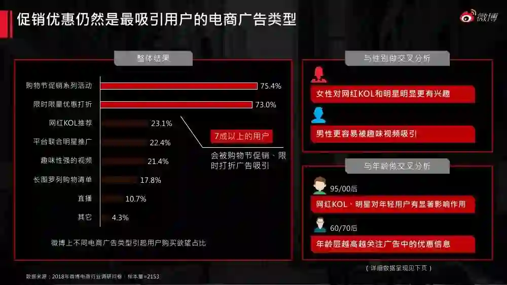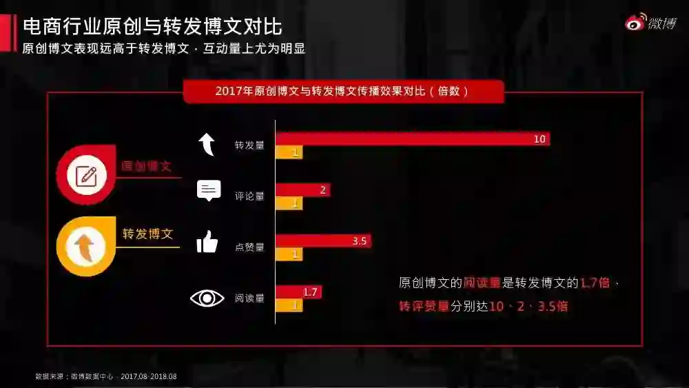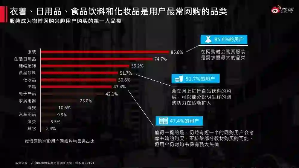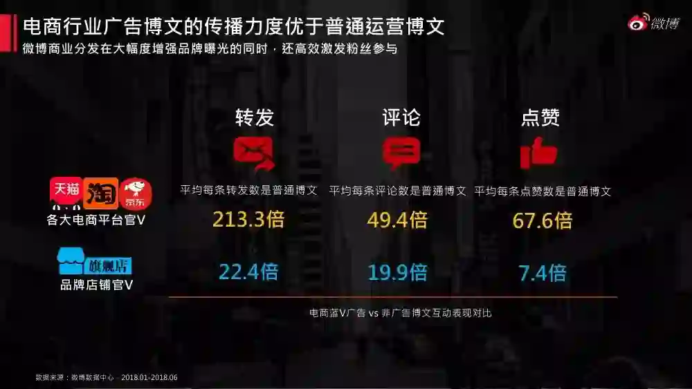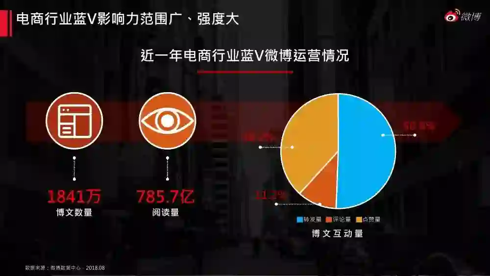 电子商务目前已来到内容电商时期。《2018微博电商白皮书》对微博平台庞大的网络兴趣用户画像、消费特征展开剖析,同时分析了微博电商蓝v的影响力、传播力、内容特征及营销案例,对电商行业的微博运营和营销具有指导意义。