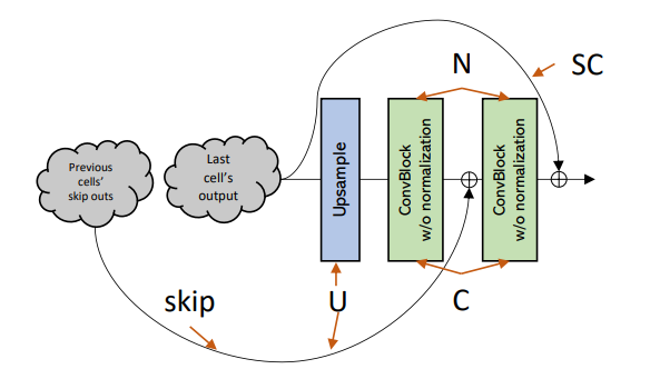 图3:AutoGAN在CIFAR-10上发现的AutoGAN(生成器)架构