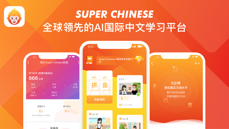 Super Chinese成立于2018年,平台将人工智能技术和对外汉语讲学相结合,为汉语学习者提供汉语能力快速测试、学习计划定制、个性化汉语学习产品及服务等功能。目前平台拥有分布在200多个国家的超过300万用户和累计超过1亿条汉语学习数据。