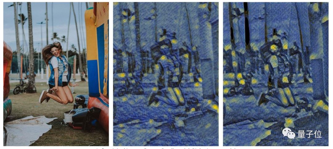 事实证明,你可以用1.7M的参数训练出风格迁移模型,然后只留下11868个参数,生成迁移图像。将模型量化后,原本7M的模型压缩到只有17KB,而迁移效果和原本模型差别不大: