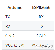 使用 arduion 和 esp8266 就 TX 对 RX,RX 对 TX,GND 对 GND,VCC 对 VCC。