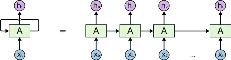 这一循环结构让神经网络可以接受输入序列。下面的展开图有助于你更好地理解RNN: