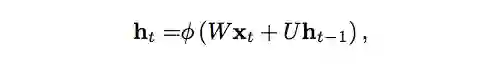 其中,ht是t时刻的隐藏状态,∅是激活函数(Tanh或Sigmoid),W是输入到t时刻的隐藏层的权重矩阵,U是t-1时刻的隐藏层到t时刻的隐藏层的权重矩阵,ht-1是t时刻的隐藏状态。