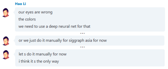 在2017年SIGGRAPH上的展示结束后,Sadeghi要求与黎颢进行一对一的会谈,讨论“多个重要议题”。