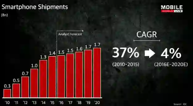 不过,未来5年,智能手机的CAGR只有4%。这让人非常沮丧,不是吗?