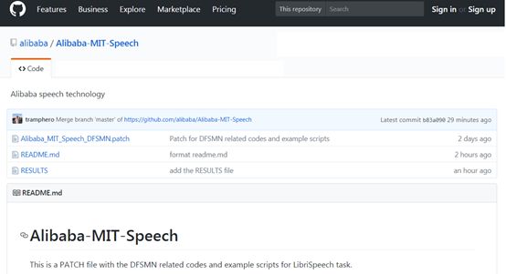 阿里在GitHub平台上开源了自主研发的DFSMN语音识别模型