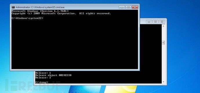最后上一张成功利用的截图。Windows 7 SP1 下成功弹出一个admin权限的cmd窗口。