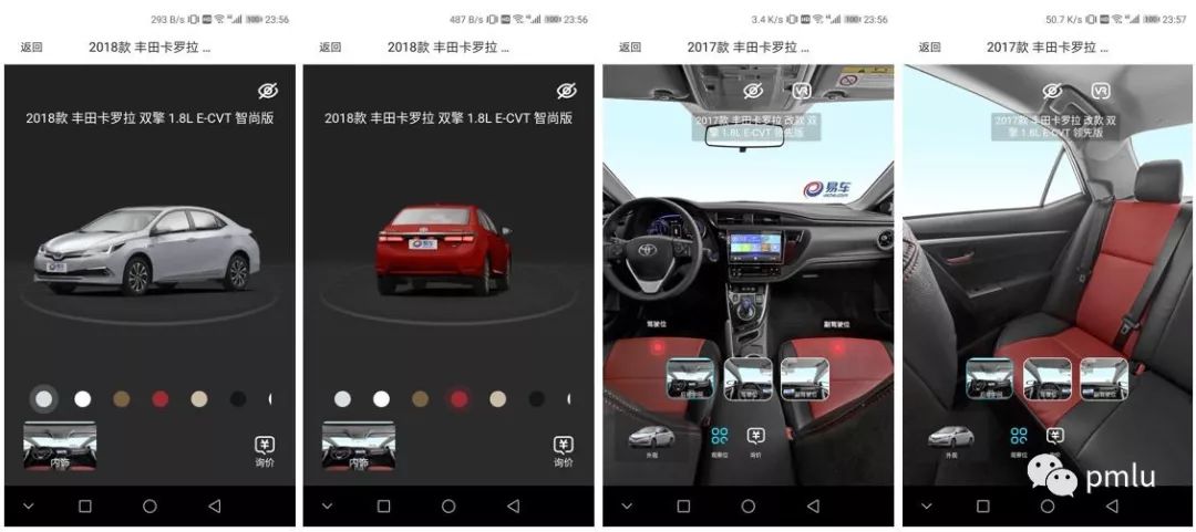 上图中左一和左二为易车App的AR看车,而右一和右二为VR看车。