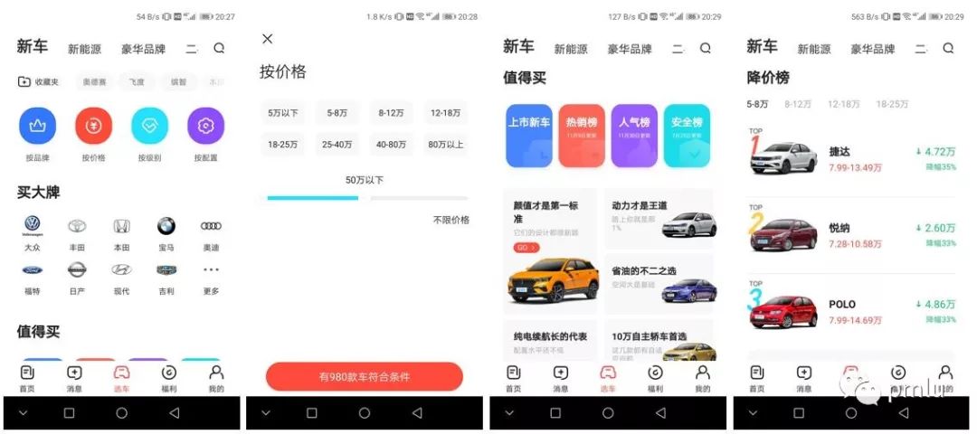 易车App的选车模块则综合运用了上述三种筛选方式。