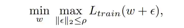 从直觉上看,SAM寻找的是可以使整个邻近训练损失最低的参数w,训练损失 通过构造极小极大目标: