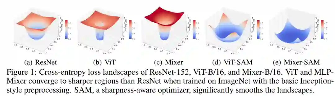 由于SAM, ViTs和mlp-mixer都汇聚在更平滑的区域,如图1(d)和1(e)所示。