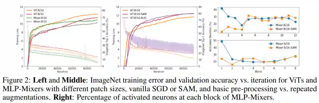 在本文中,作者研究了ViTs和mlp-mixer的损失情况,从优化的角度理解它们,旨在减少它们对大规模预训练或强数据增强的依赖。