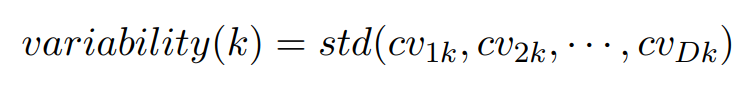因此,cv 是表征主题离散度最好的方式,所以某个主题 k 的主题离散度的计算公式可以表达为: