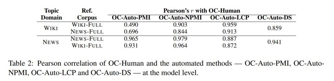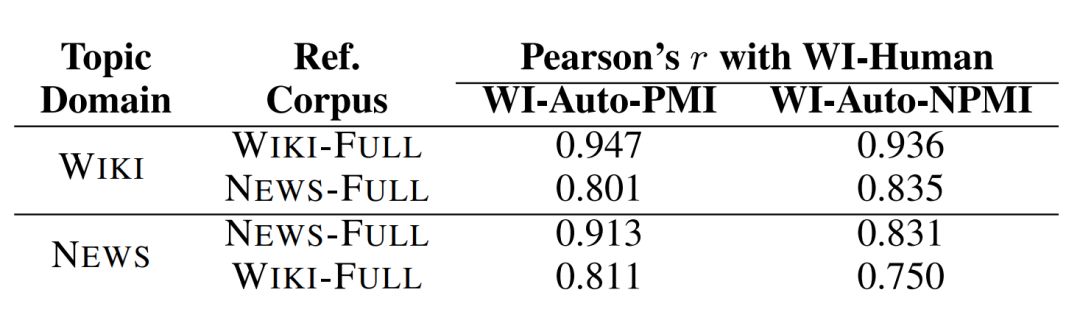 图中显示的是 Jey 的方法(WI-Auto-PMI, WI-Auto-NPMI)与人工判别(WI-Human)的关联度,可以看到这些方法与人工判别得到的结果还是比较一致的。