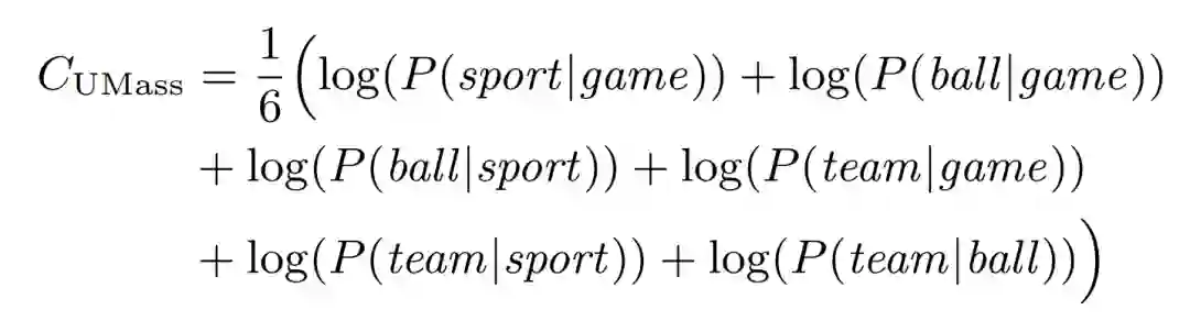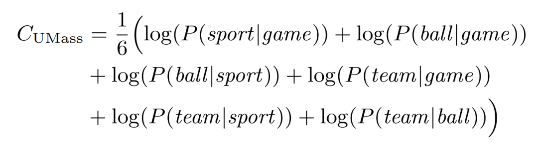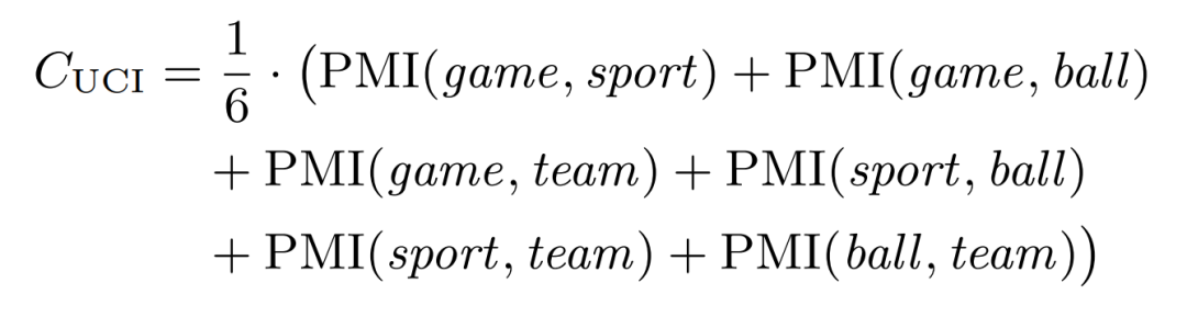 因此上面提到的示例主题 {game, sport, ball, team} 的 UCI 分数则为: