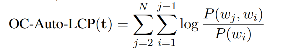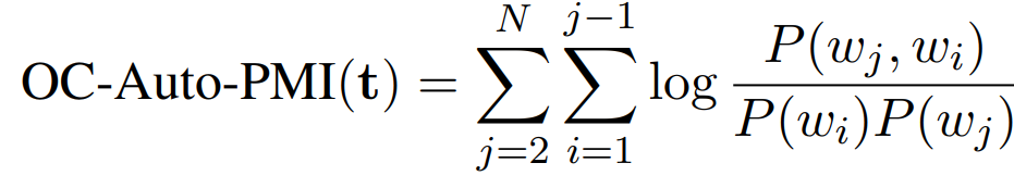 OC(Observed Coherence)-Auto-PMI:对一个主题内的词计算 PMI,计算方法其实就是 PMI,如下图所示: