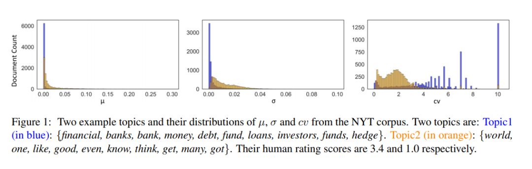 通过公式可以很清晰的看出,相较于前面的计算方式,主题稳定性并不需要参数和多余的语料库。然而,有些常用词的词频很高,因此出现在主题中时主题的稳定度会很高,但是它们跟主题却并不相关,这也就导致一些很差的主题有很高的主题稳定度。