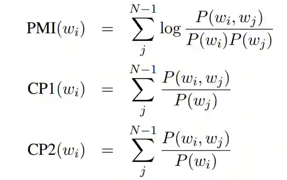 为了模拟这种间接人工判别的结果,Jey Han Lau(2014)从那些发给人工做判别的主题词中提取了词之间的联系特征,提取的方法为以下三种: