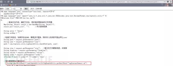 6、结合上面的目录信息和任意文件读取漏洞,对JSP文件简单审计一下,发现logContentNewest.jsp会调用一个bash脚本,便猜想能否使用它构造命令执行:
