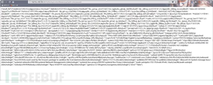 logContentNewest.jsp正常执行是这样的,可自定义path参数的值,如/etc/passwd,来查找这个文件里面的内容: