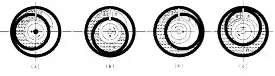旋转活塞式流量计进出口由隔板隔开。当被测流体从进口进入计量室,这时进出口形成压差,迫使活塞逆时针旋转如图a所示。流体连续流入,迫使活塞转动如图b所示,形成二个半月牙腔体,在压差作用下迫使活塞转动如图c,V2流体从出口排出,使活塞转动如图d所示,在压差作用下转动,活塞每转一周迸出的流体等于V1+V2的和。