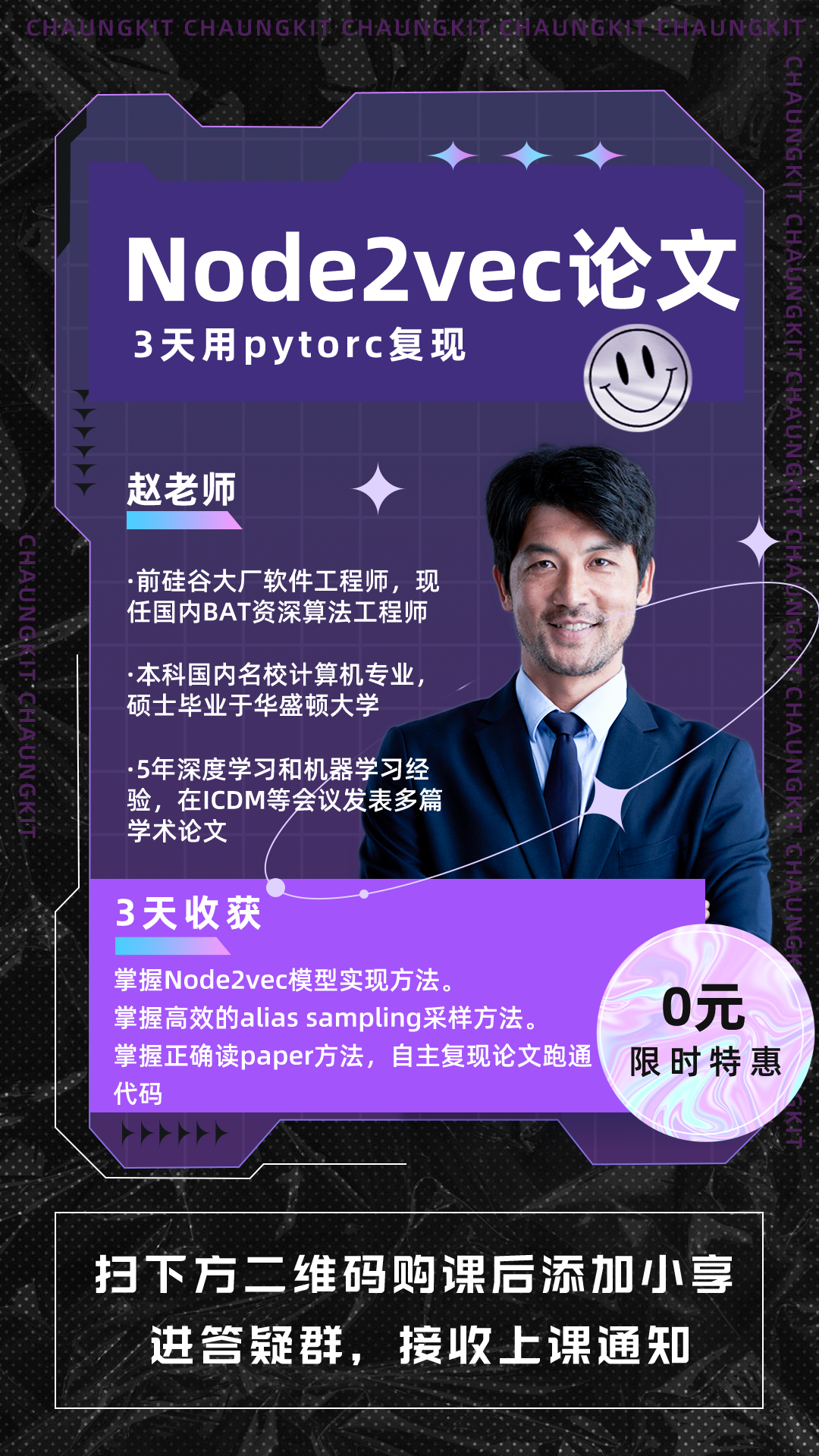 扫码购买复现NLP 图神经网络系列论文课之——《Node2vec:图神经网络最著名的模型之一》3天手把手教你复现论文,掌握GNN!