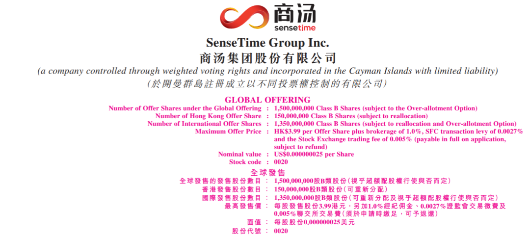 据《财新网》报道,按计划,商汤将在港股发行15亿B类普通股新股,占总股本的4.5%,预计筹集人民币47.23亿元至48.95亿元。