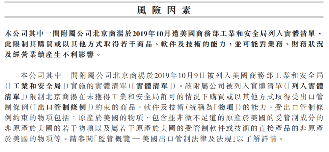 在本次的招股说明书中,商汤将2019年被列入实体清单标记为「风险因素」之一,因为这可能会限制商汤科技购买某些技术、软件和商品的能力。