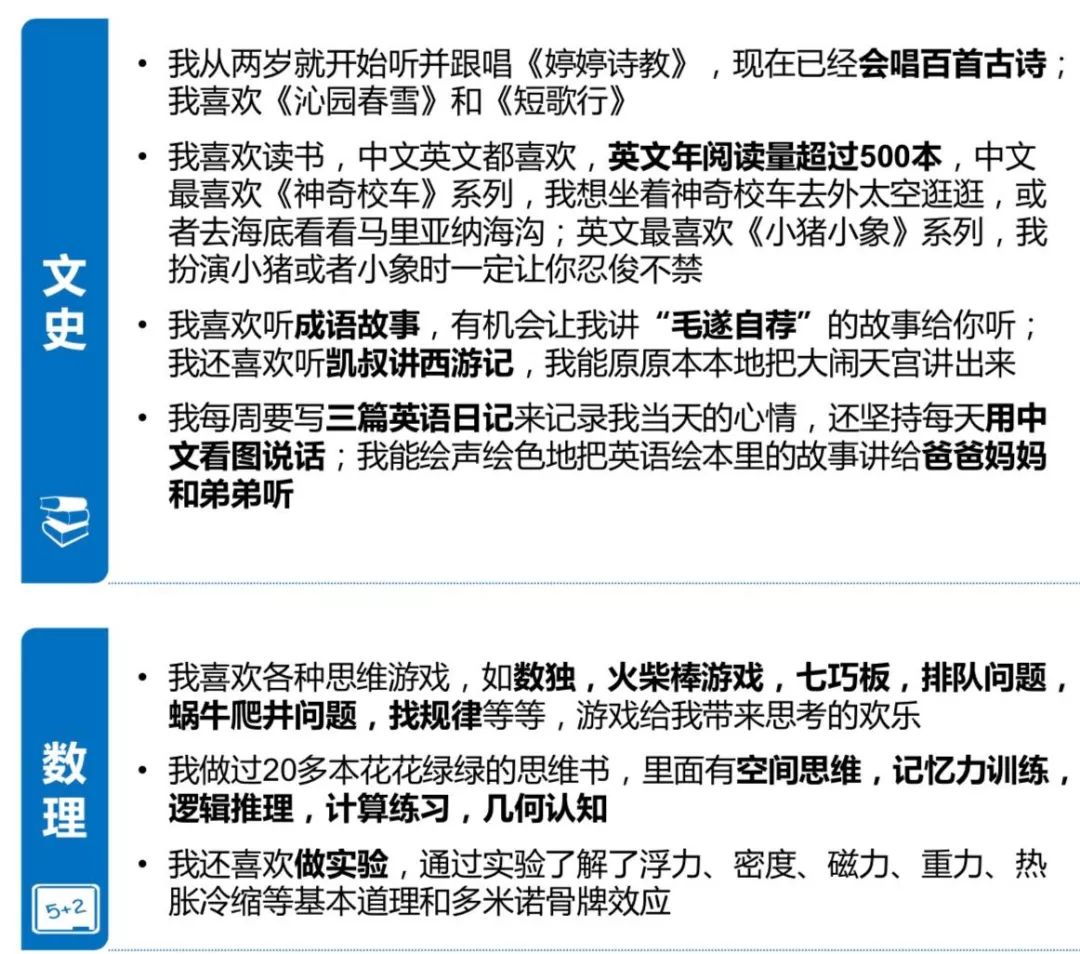家长绞尽脑汁制作简历展示孩子的“优秀”,唯独伪装成孩子的口吻来叙述,“学龄前儿童制作”的简历里,放眼望去都是“我如何如何”,到处都是道理和大词的堆积,内容完全是大人的口吻,却要处心积虑以孩子的面貌来展示。其叙述风格甚至都不是“小大人”,矫揉造作到了“欲盖弥彰”的程度,完全看不到儿童的天真烂漫。我无法想象,家长这样做的时候可否有任何迟疑,未来要如何向孩子解释什么是“诚信”。