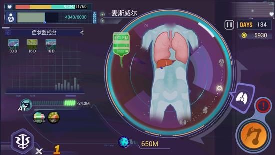 在游戏中,玩家要扮演一位救死扶伤的肿瘤医生,游戏提供了多个真实的生化指标,玩家要在患者的体力、免疫力和消灭肿瘤三者之间不断平衡。