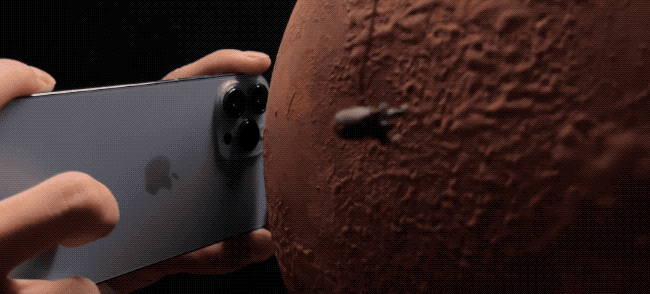 iPhone 13 Pro 系列新增的微距模式,也在影片中起到了重要作用。比如在拍摄微缩模型全地形车在火星上发动的镜头,就是利用 iPhone 13 Pro 的微距模式完成拍摄。