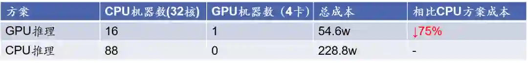 在相同精排请求 600 QPS,3000 Batch size 下,经测算模型推理机器成本节省约 75% 左右。