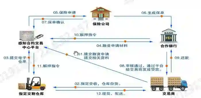 以银行的质押放贷等业务为例,这是一种以物流信息为主的融资过程,这里不展开详谈了,大家只需要了解下图中的第7步、第10步等操作等涉及确认、解押的操作都需要现场核对,产品的流程复杂,效率很低。