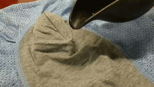 当石墨烯的裆部滴上水后,面料会迅速吸水,瞬间变成可视化的石墨烯——蜂窝状结构!