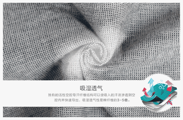 在面料选择上,特意为排湿做了调整,它有着非常大的表面积,使其吸湿透气性是棉纤维的3-5倍,只为男性在运动时也可以时刻干爽,不湿不黏腻。