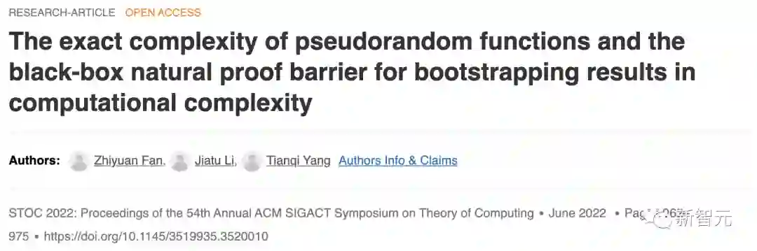 值得一提的是,李嘉图和杨天祺的另一篇论文也被STOC 2022接收了。