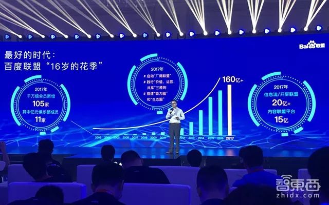 百度联盟总经理李忠军,也就是百度联盟的业务掌门人,以“联创新智,生态升级”的主题对百度联盟接下来的战略打法做了简单清晰的阐释。