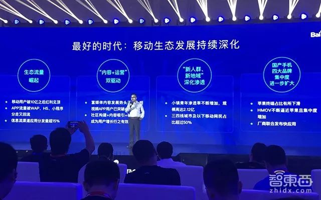 李忠军说现在是最好的时代,核心原因之一是移动生态发展的持续升华,重点体现在四个方面,包括: