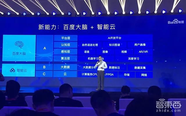 4、新能力:新能力主要基于百度大脑和智能云,跟合作伙伴开放。百度大脑提供AI方面的能力,智能云则提供大数据的能力。
