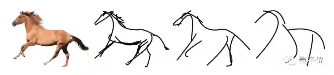 同样画一匹马,用32笔去画和只用4笔去画,抽象效果肯定是不一样的: