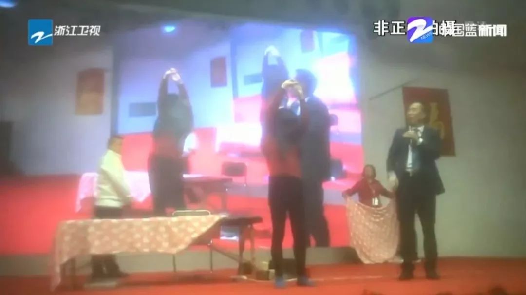 ▲穿灰色外套的丹丹和“电疗师”一起“工作”