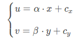如上图,成平面坐标系和像素坐标系之间存在一个缩放和平移