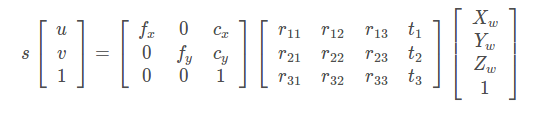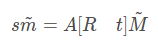 其中,s为缩放因子,A为相机的内参矩阵,[R t]为相机的外参矩阵,和