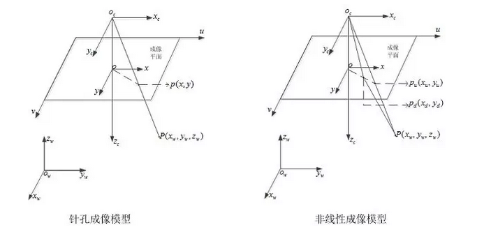 我们在摄像机坐标系到图像坐标系变换时谈到透视投影。摄像机拍照时通过透镜把实物投影到像平面上,但是透镜由于制造精度以及组装工艺的偏差会引入畸变,导致原始图像的失真。因此我们需要考虑成像畸变的问题。