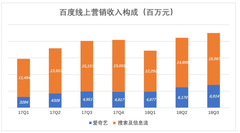 爱奇艺的广告收入是“线上营销”收入的子集,爱奇艺之外的广告收入主要来自搜索和信息流。