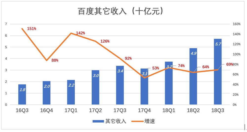 宏观经济形势不佳,推动百度营收增长第一是功臣爱奇艺,第二是“其它业务”,第三是信息流广告。