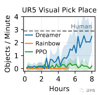 在机械臂训练过程中,这一新方法还克服了视觉定位和稀疏奖励的挑战,几小时内的训练成果明显优于其他方法。