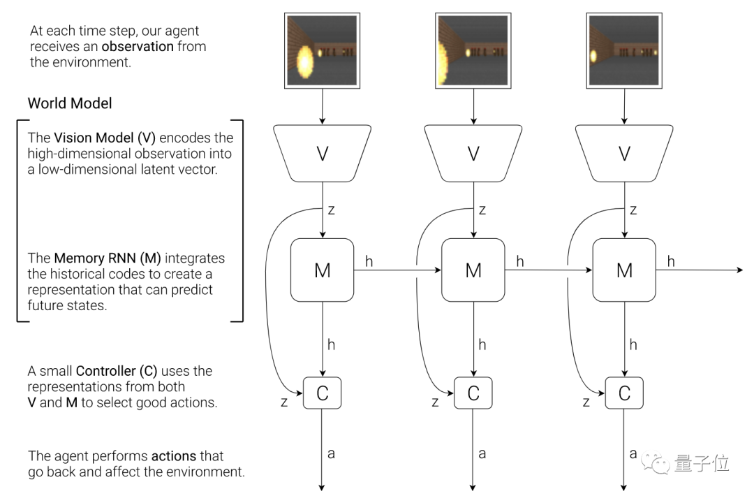 它包括一个视觉感知组件,能将看到的图像压缩成一个低维的表征向量作为模型输入。