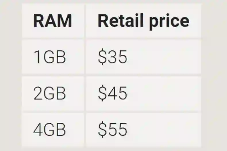 树莓派 4 是一款非常强大的单板计算机,起售价 35 美元。35 美元机器配置的是 1GB 内存,45 美元则可获得 2GB 内存,55 美元则可获得 4GB 内存的机器。